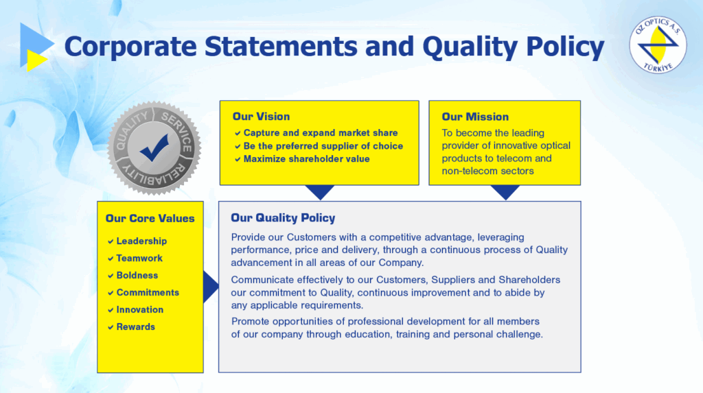 • Policy Provide our Customers with a competitive advantage, leveraging performance, price and delivery, through a continuous process of Quality advancement in all areas of our Company.